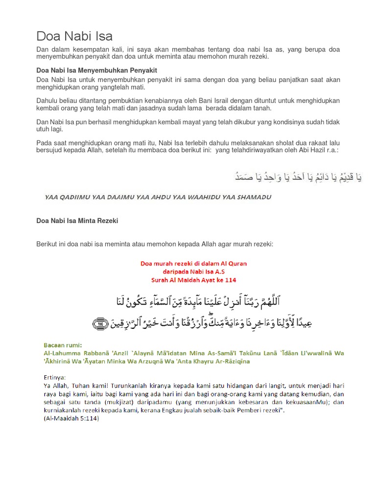 | Judul Surah: Doa Nabi Isa As Lengkap Bacaan Arab Latin Beserta Terjemahan |